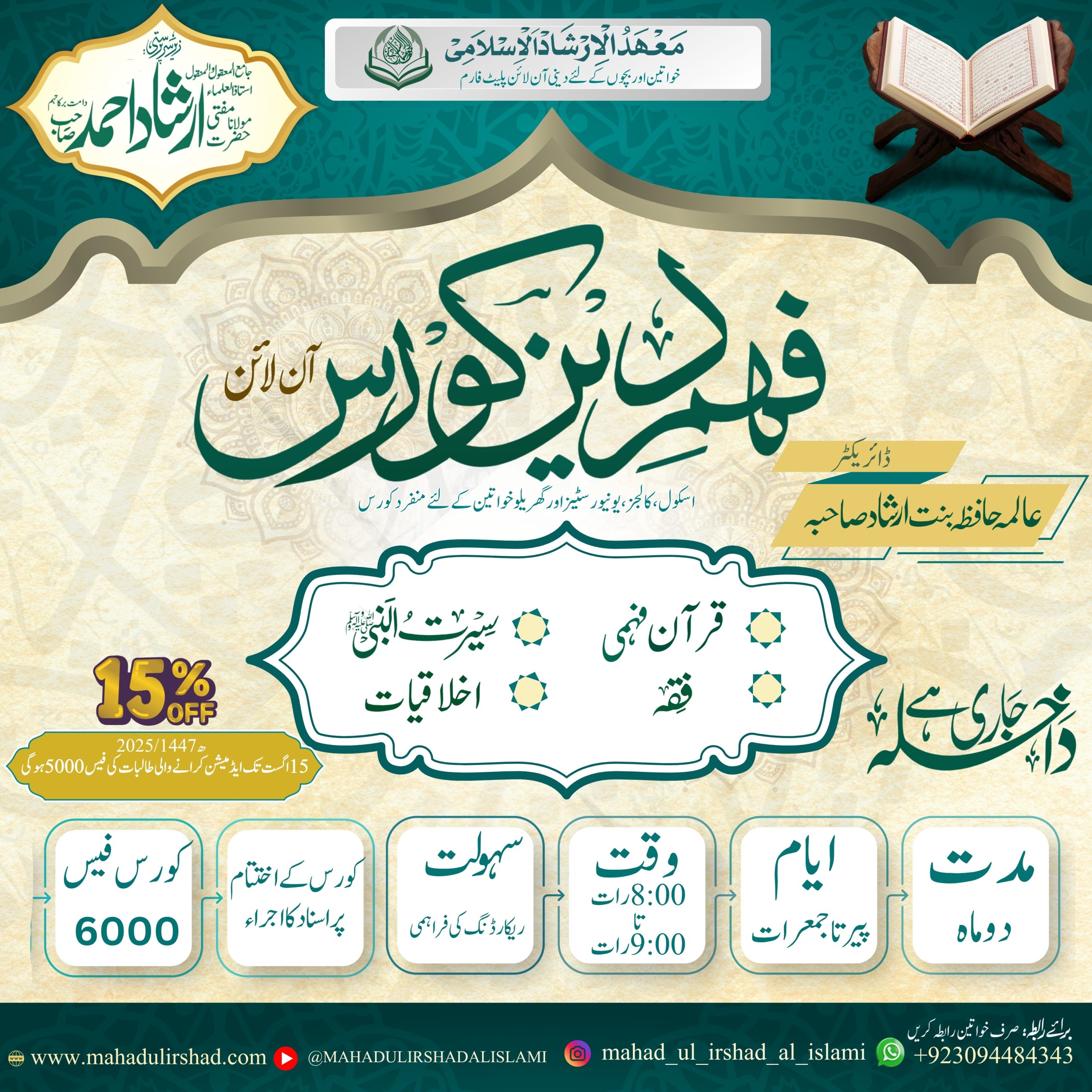 The course will be conducted by qualified female Islamic teachers from Ma’had Ul-Irshad Al-Islami, trained in Qur’an, Seerah, Fiqh, and Tarbiyah.